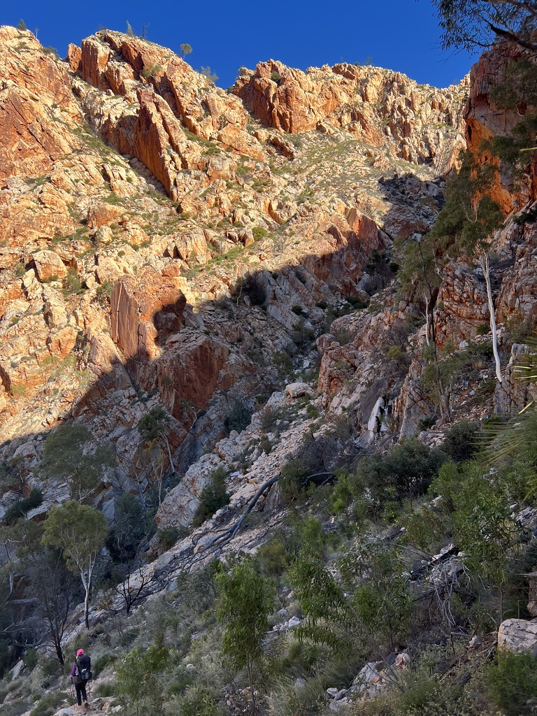 The closer we got to Standley Chasm the more amazing the scenery became as I climbed through Gastrolobium Saddle and Angkale Junction. While this final couple of kilometers was amazing it was also hard walking with lots of scrambling and some serious climbs – I’d heard this portion was tough and it lived up to it’s reputation. At one point I ended up off the trail as I’d followed Katrina up a scramble and we went too far so had to cut back through the spinifex to the track.