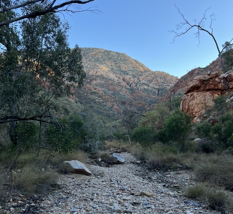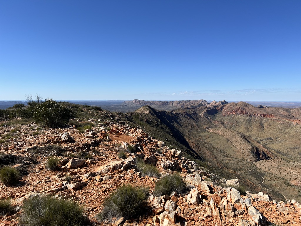 Up and up and up I went until arrival at Reveal Saddle just of 5km into the day. From here I could see the Alice Valley to the south-east and further out the Heavitree Range and west the first views of Brinkley Bluff but only half way there.