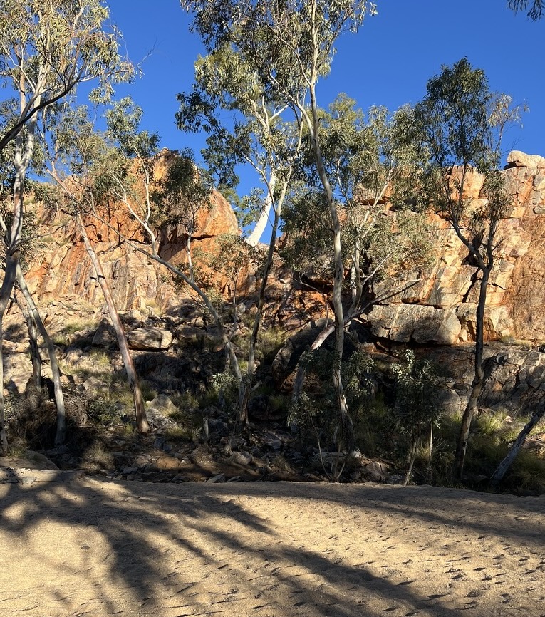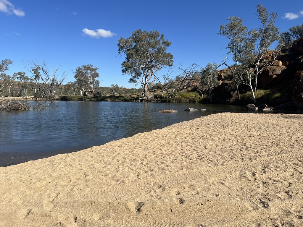 I arrived at 4/5 Junction around 12pm had lunch while charging my phone using the solar USB charging of the shelter. Here I found out Katrina had fallen a short distance beyond 4/5 Junction and found day trippers at Birthday Waterhole to take her back to Alice Springs for medical treatment leaving her hiking poles at the shelter. Another couple from Brinkley headed off to try and make Fringe Lily Creek today.